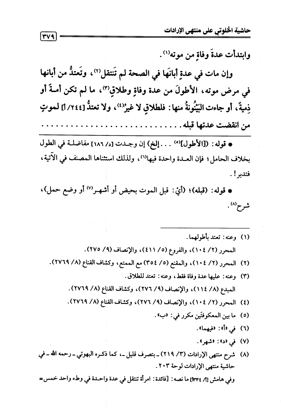 (¬8) شرح منتهى الإرادات (3/ 219) -بتصرف قليل-، كما ذكره البهوتي -رحمه اللَّه- في حاشية منتهى الإرادات لوحة 203.