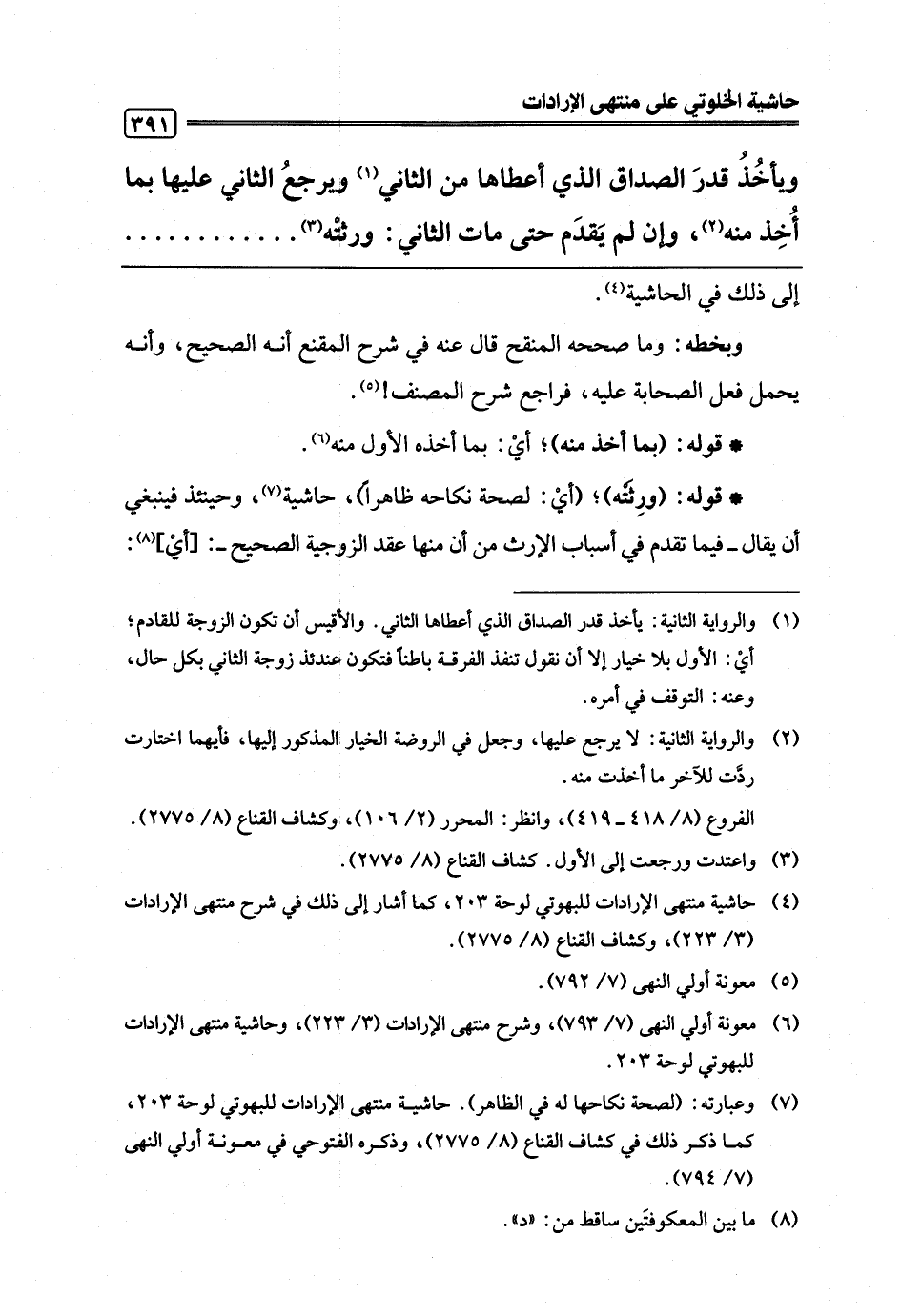 (¬4) حاشية منتهى الإرادات للبهوتي لوحة 203، كما أشار إلى ذلك في شرح منتهى الإرادات (3/ 223)، وكشاف القناع (8/ 2775).