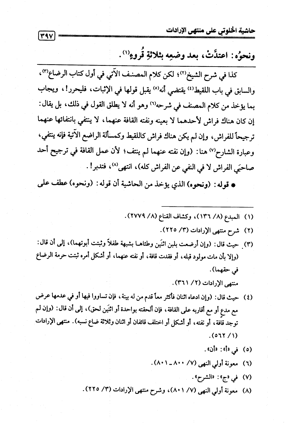 (¬8) معونة أولي النهى (7/ 801)، وشرح منتهى الإرادات (3/ 225).