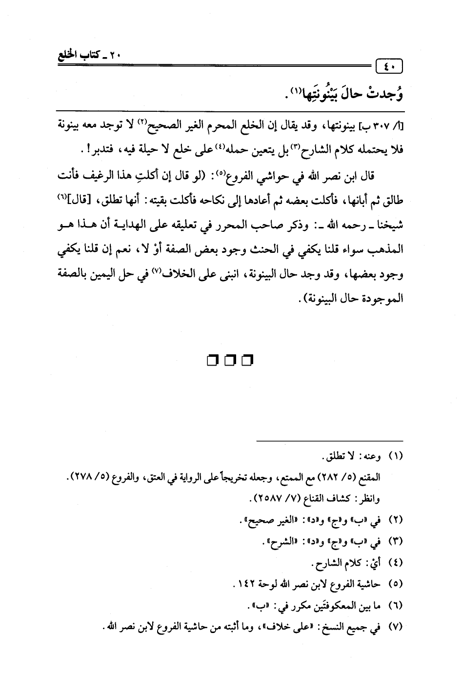 (¬7) في جميع النسخ: "على خلاف"، وما أثبته من حاشية الفروع لابن نصر اللَّه.