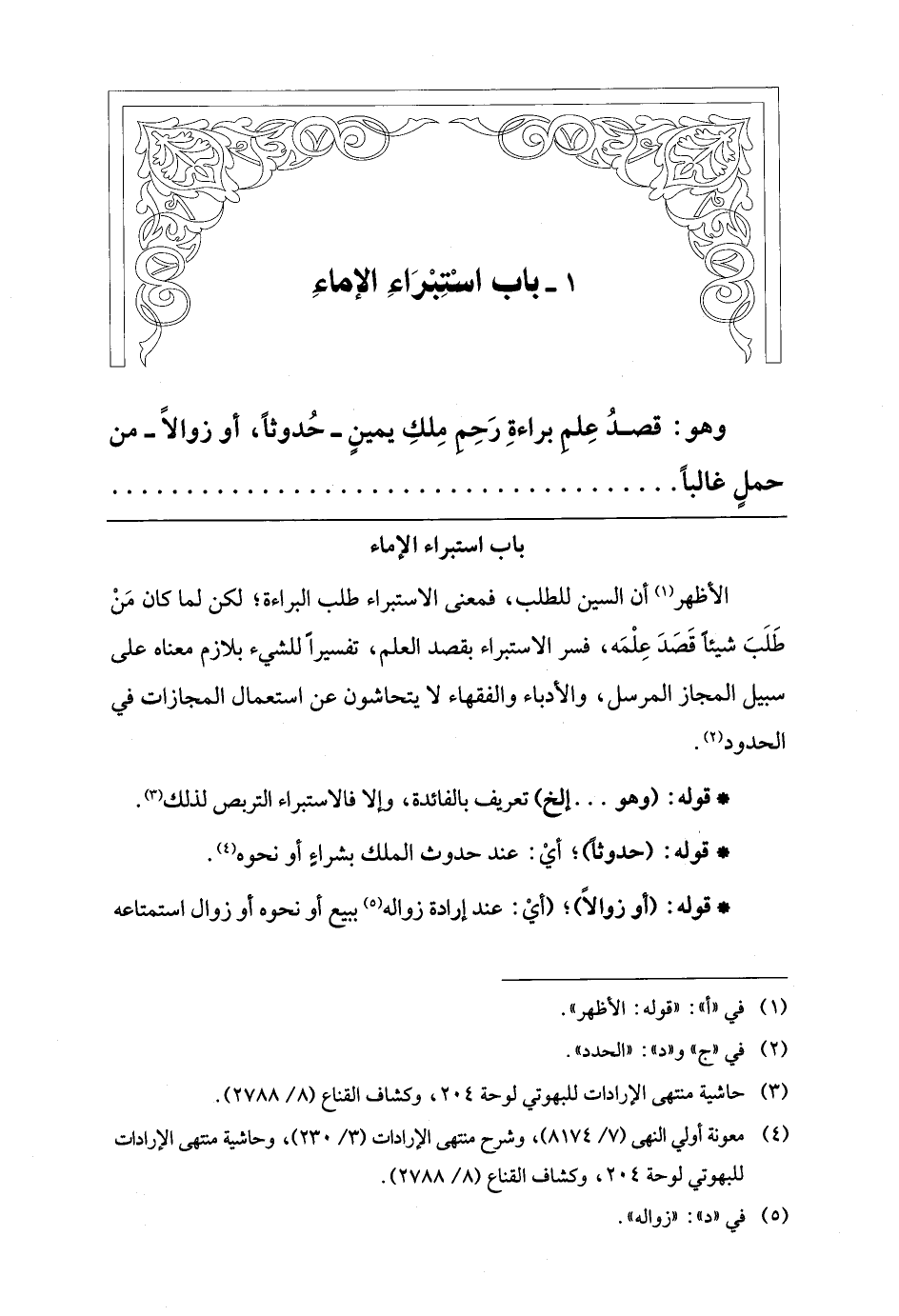 (¬3) حاشية منتهى الإرادات للبهوتي لوحة 204، وكشاف القناع (8/ 2788).