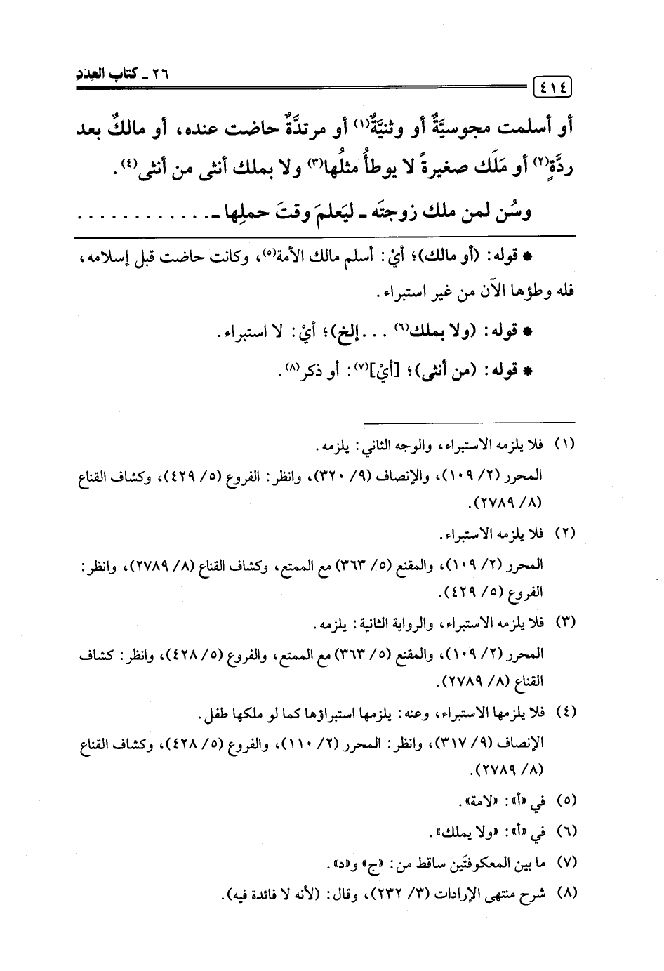 * قوله: (أو مالك)؛ أيْ: أسلم مالك الأمة (¬5)، وكانت حاضت قبل إسلامه، فله وطؤها الآن من غير استبراء.