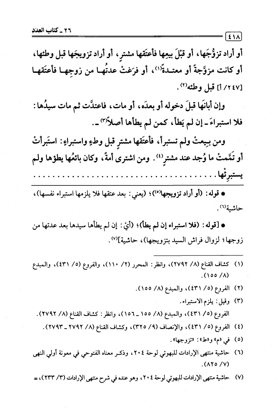 (¬7) حاشية منتهى الإرادات للبهوتي لوحة 204، وهو عنده في شرح منتهى الإرادات (3/ 233)، =