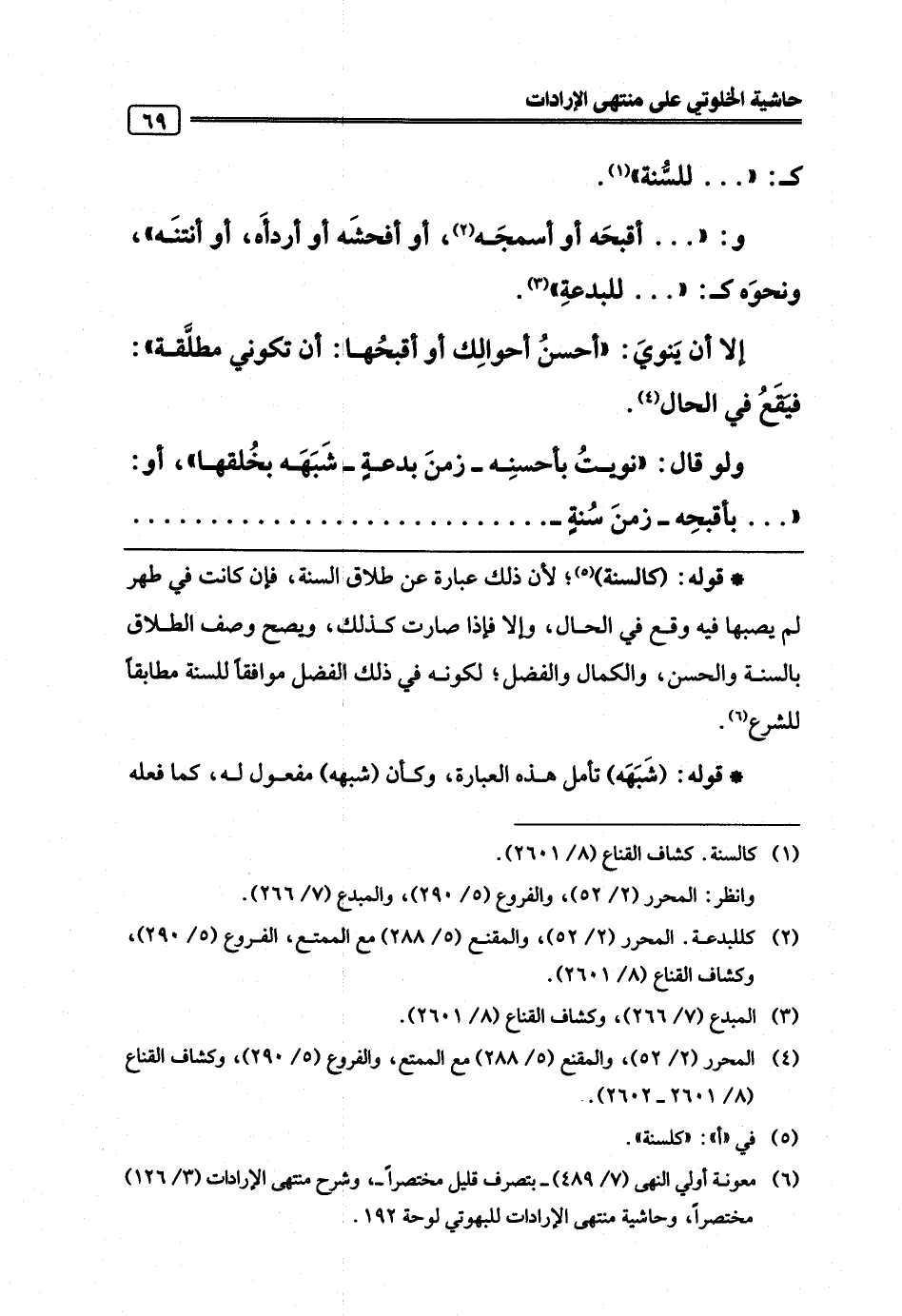 (¬6) معونة أولي النهي (7/ 489) -بتصرف قليل مختصرًا-، وشرح منتهى الإرادات (3/ 126) مختصرًا، وحاشية منتهى الإرادات للبهوتي لوحة 192.