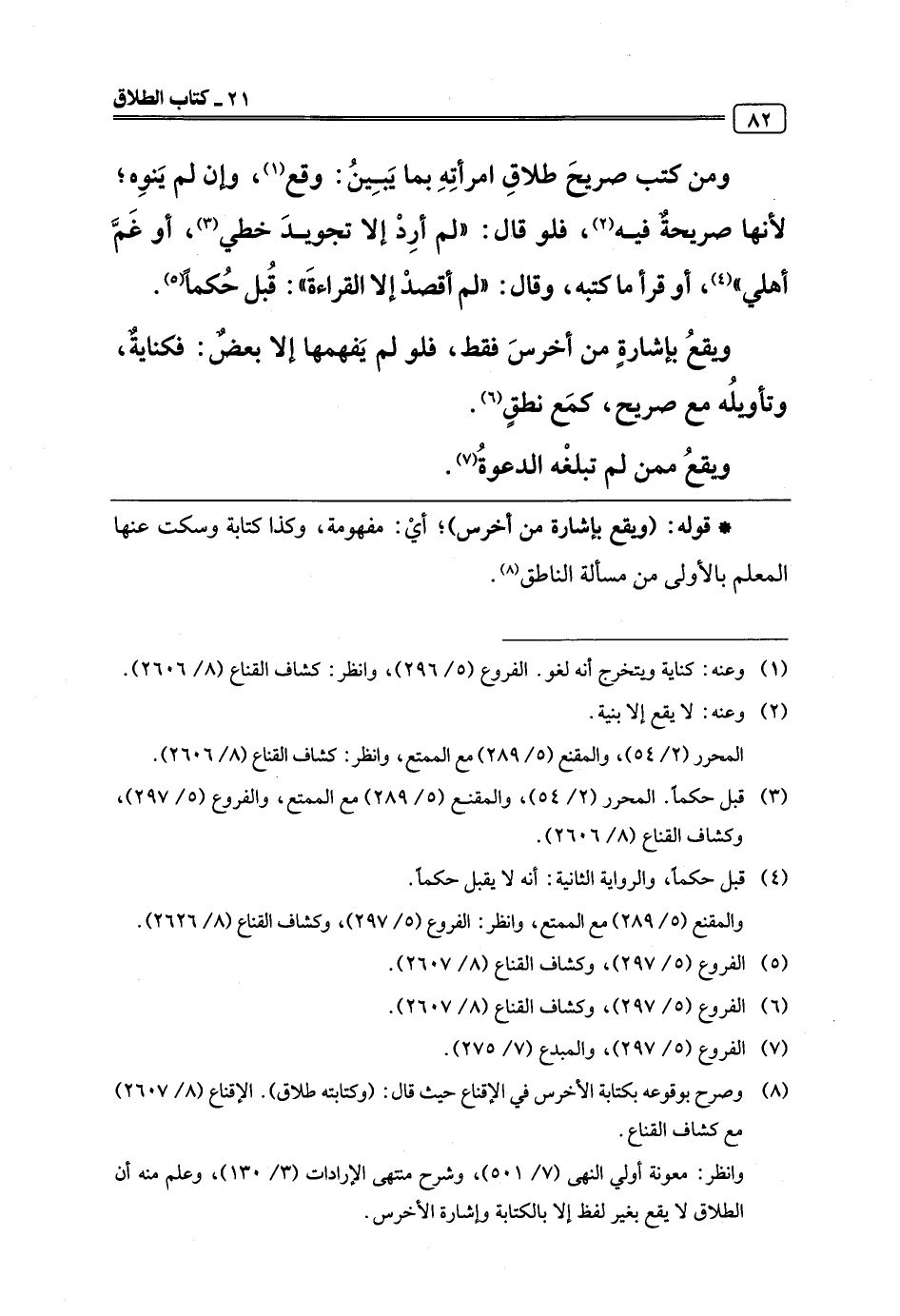 (¬8) وصرح بوقوعه بكتابة الأخرس في الإقناع حيث قال: (وكتابته طلاق). الإقناع (8/ 2607) مع كشاف القناع.