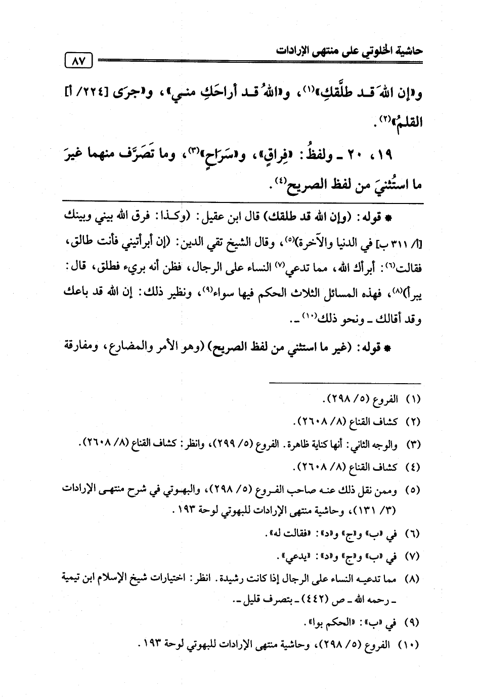 (¬10) الفروع (5/ 298)، وحاشية منتهى الإرادات للبهوتي لوحة 193.