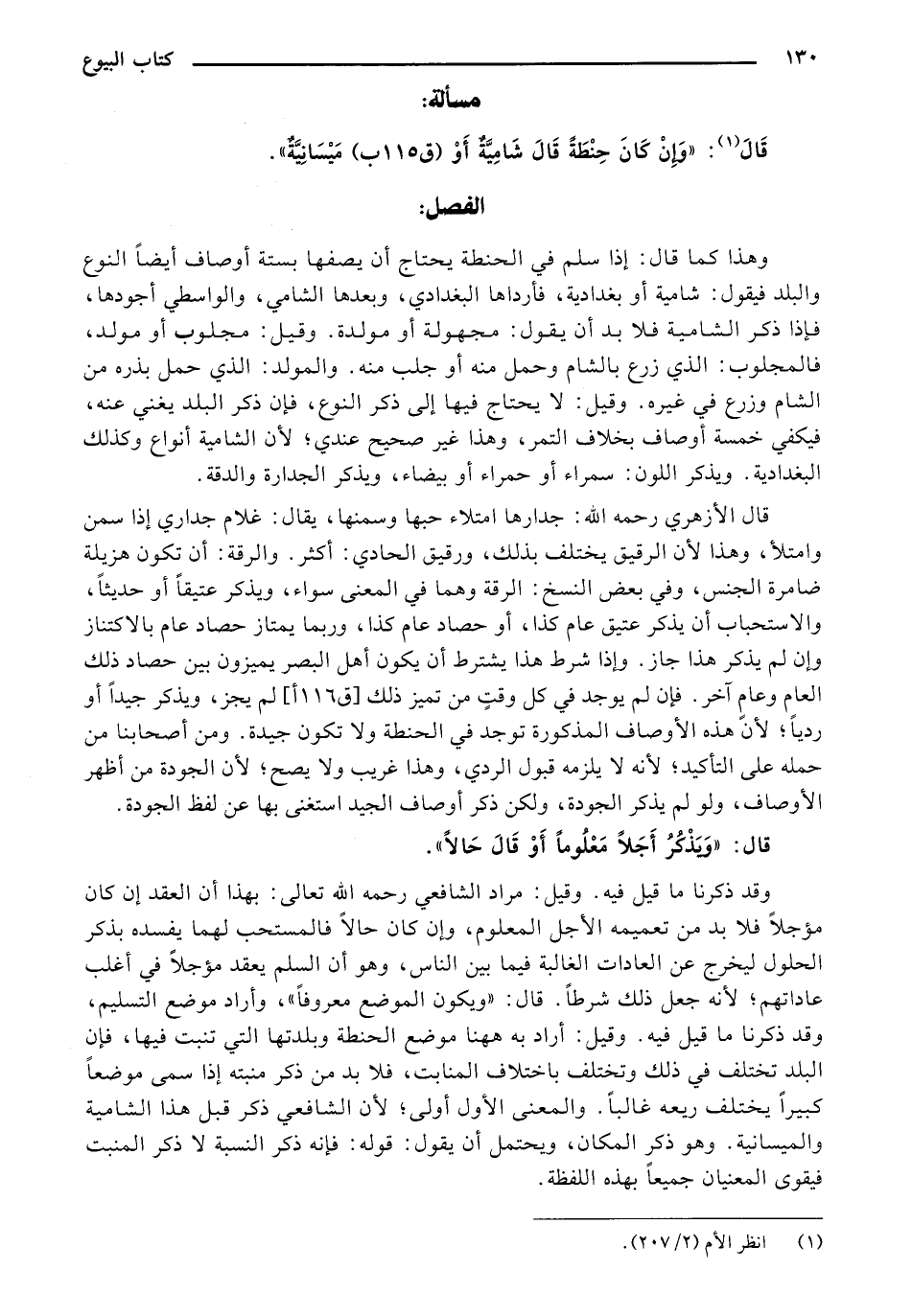 قَالَ: ((وَإِن كَانَ حِنطَةً قَالَ شَامِيةٌ أَو (ق 115 ب) مَيسَانِيةٌ)).