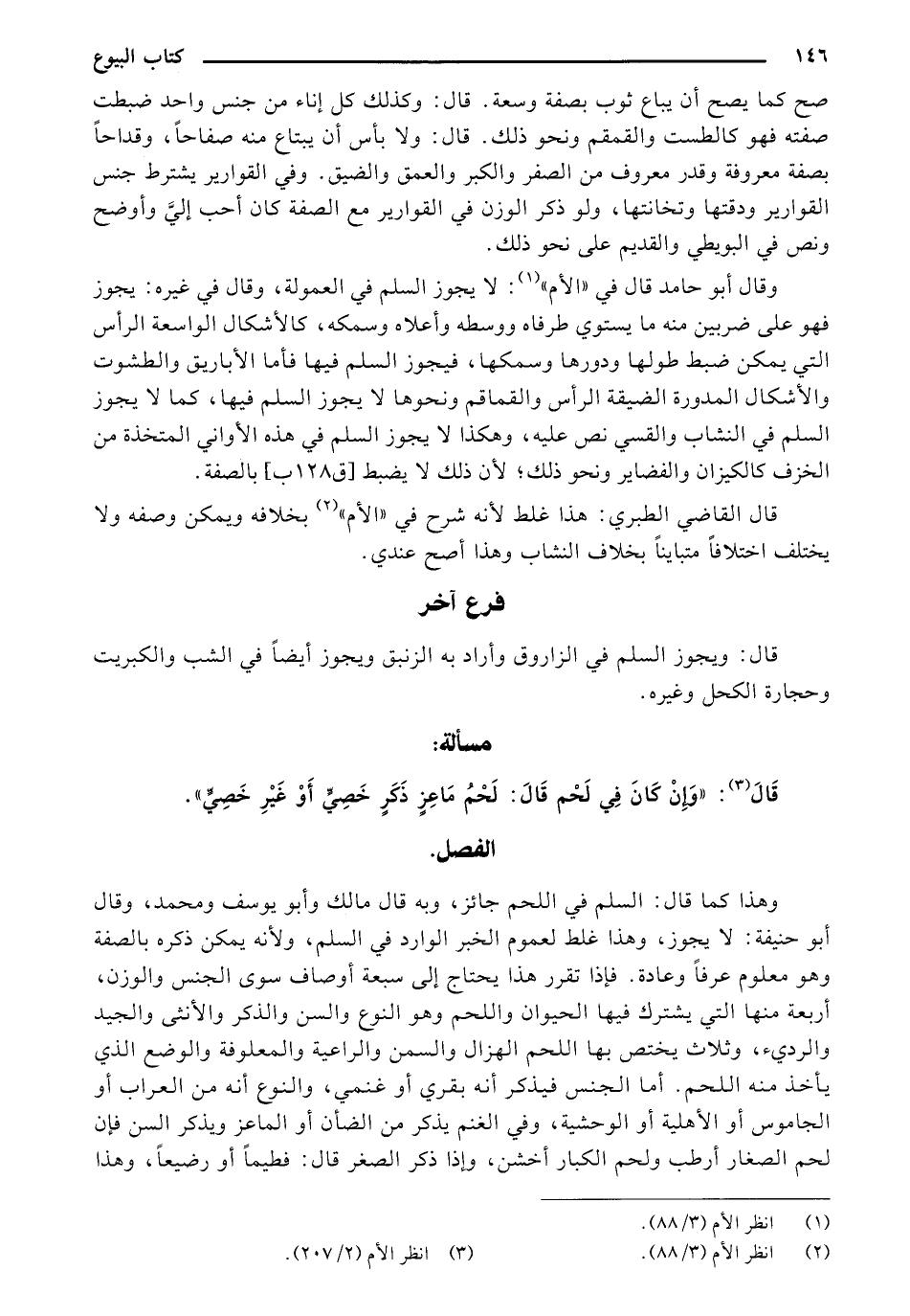 السلم في النشاب والقسي نص عليه، وهكذا لا يجوز السلم في هذه الأواني المتخذة من الخزف كالكينان والفضاير ونحو ذلك؛ لأن ذلك لا يضبط [ق 128 ب [بالصفة.