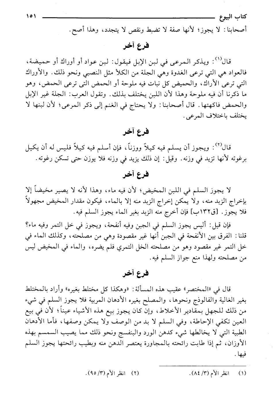 قلنا: الفرق بين الأنفحة في الجبن أنها غير مقصودة وهي من مصلحته، وكذلك الماء في خل التمر غير مقصود وهو من مصلحته الخل التمري فلم يضره، والماء في المخيض ليس من مصلحته ولهذا منع جواز السلم فيه.