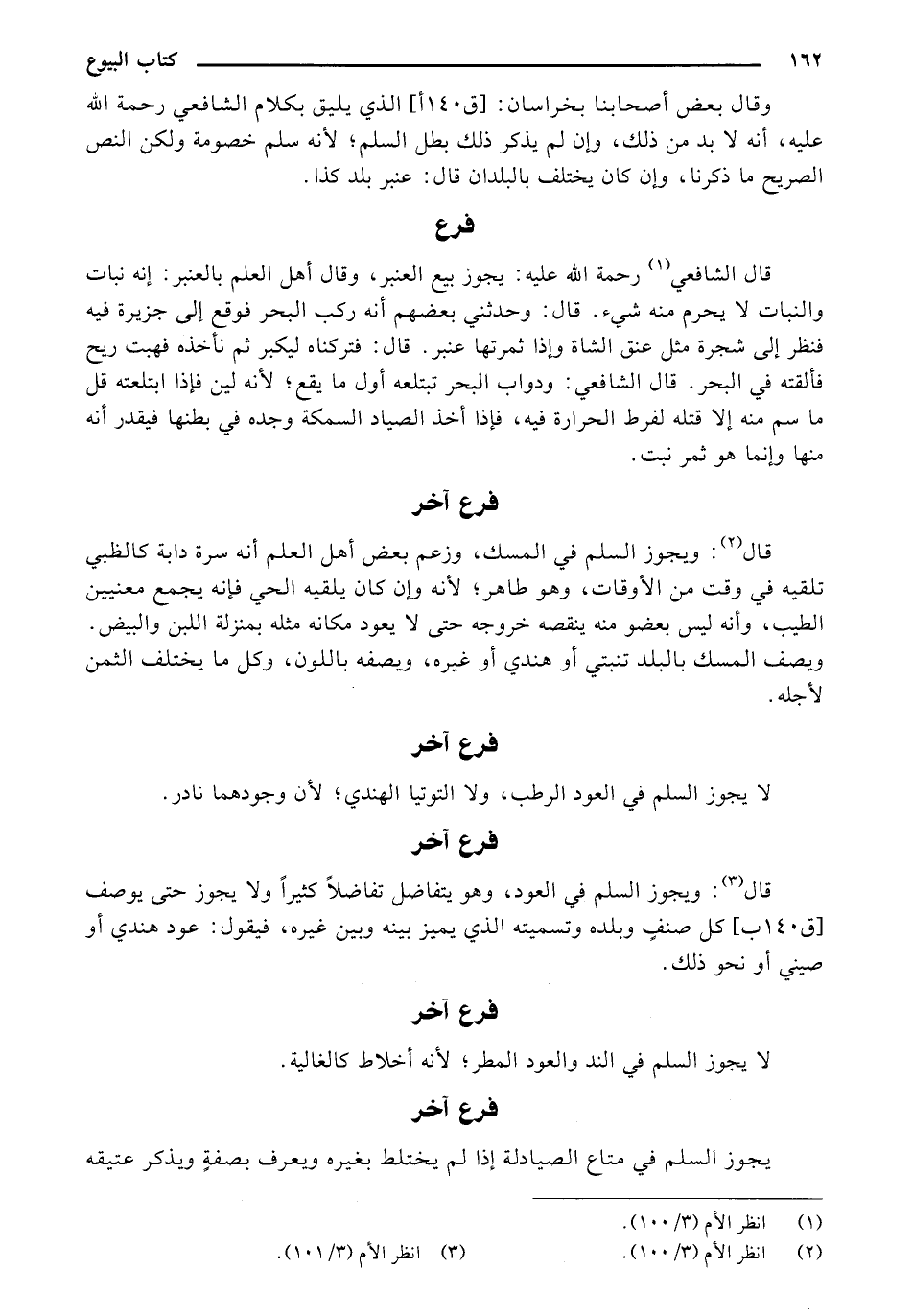 قال: ويجوز السلم في العود، وهو يتفاضل تفاضلًا كثيرًا ولا يجوز حتى يوصف [ق 140 ب] كل صنف وبلده وتسميته الذي يميز بيه وبين غيره، فيقول: عود هندي أو صيني أو نحو ذلك.