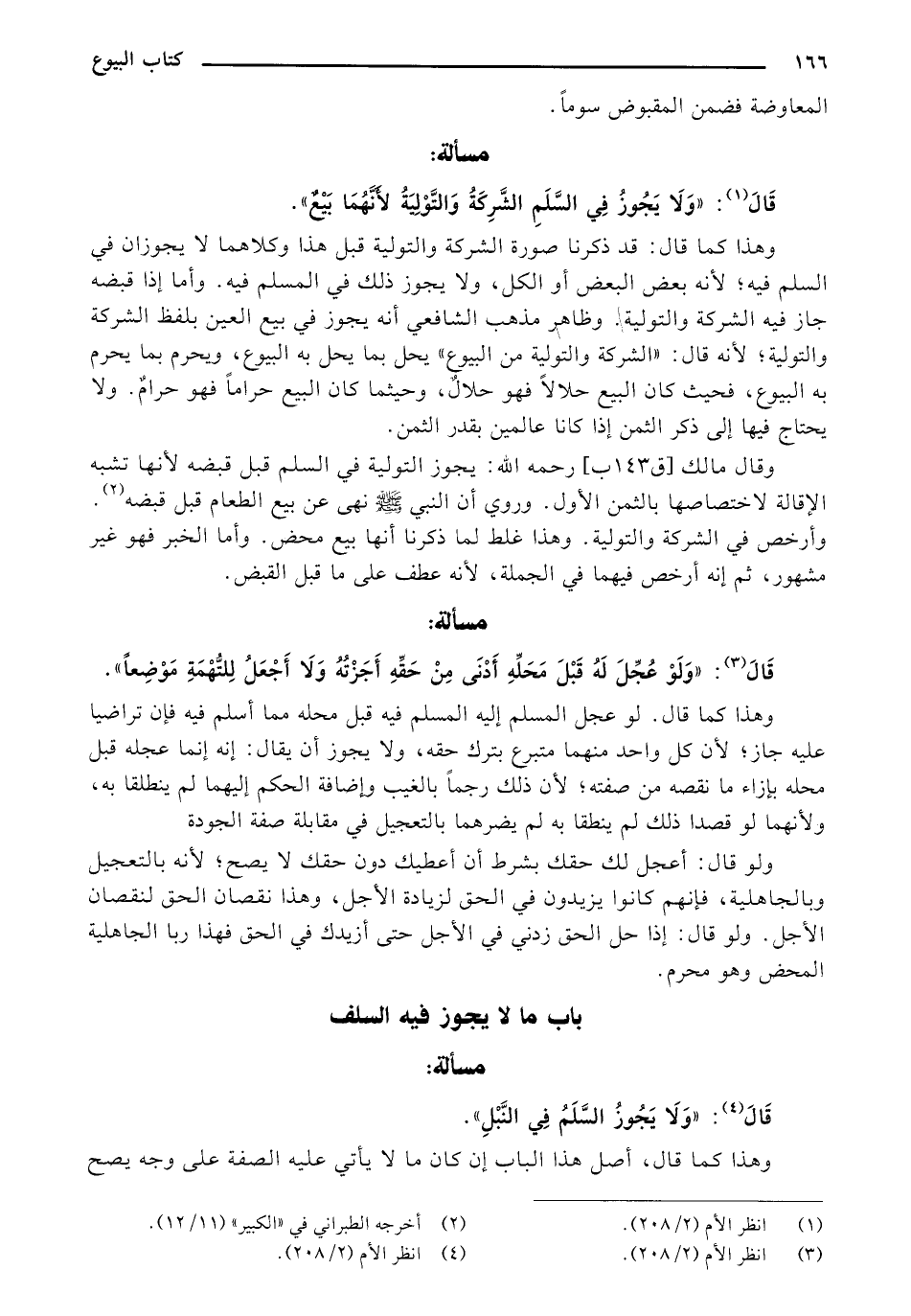 قال: "ولا يجوز في السلم الشرِكة والتولية لأنهما بيع".