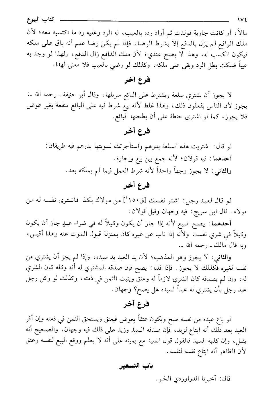 مالاً، أو كانت جارية فولدت ثم أراده رده بالعيب، له الرد وعليه رد ما اكتسبه معه، لأن ملك الرافع لم يزل بالدفع إلا بشرط الرضا، فإذا لم يكن رضا علم أنه باق على ملكه فيكون الكسب له، وهذا لا يصح عندي، لأن ملك الدافع زال الدفع، ولهذا لو وجد به عيباً فسكت بطل الرد وبقي على ملكه، وكذلك لو رضي بالعيب فلا معنى لهذا.
