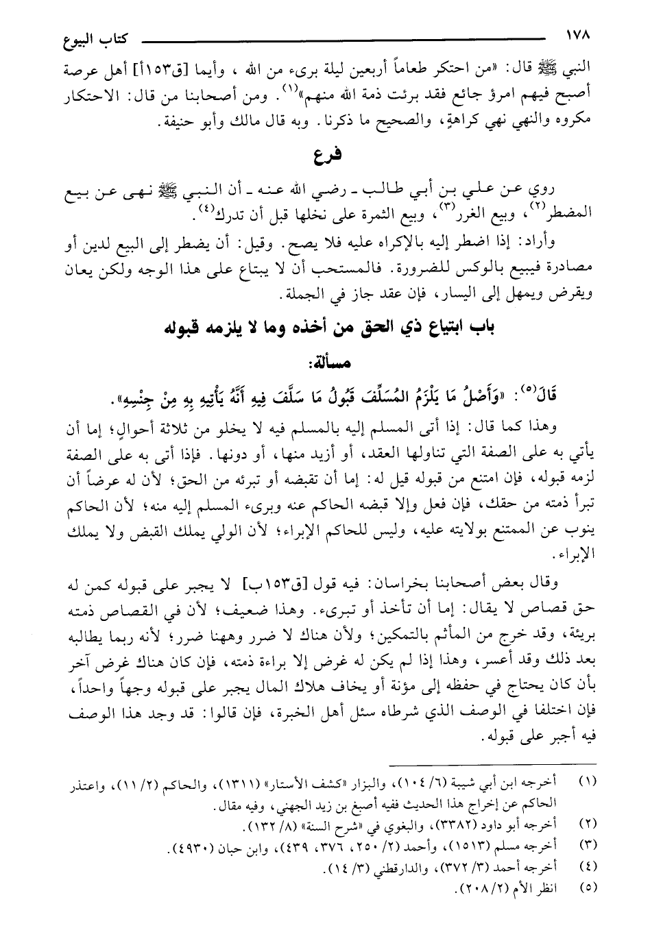 روى عن علي بن أبي طالب - رضي الله عنه - أن النبي صلى الله عليه وسلم نهى عن بيع المضطر، وبيع الغرر، وبيع الثمرة على نخلها قبل أن تدرك.