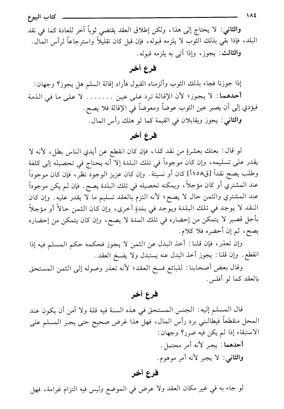 والثاني: لا يحتاج إلى هذا، ولكن إطلاق العقد يقتضي ثوباً آخر للعادة كما في نقد البلد، فإذا بقى بذلك الثوب لا يلزمه قبوله، فإن قبل كان تقليلاً واسترجاعاً لرأس المال.