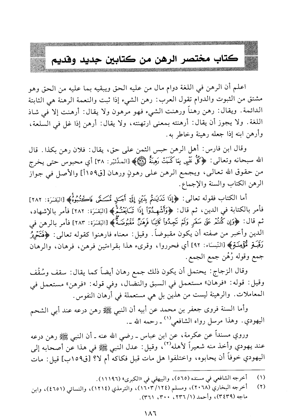 كتاب مختصر الرهن من كتابين جديد وقديم