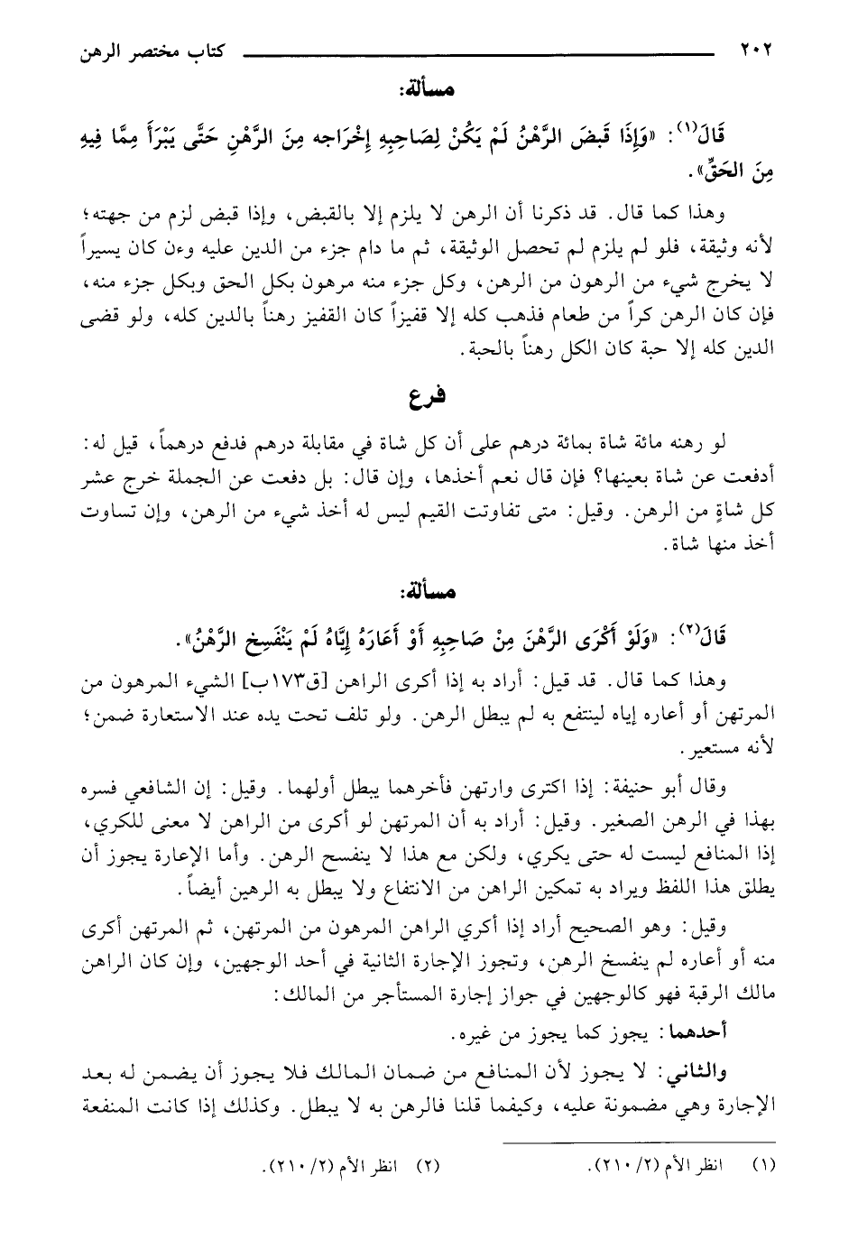 قَالَ: "وَإِذَا قَبضَ الرَّهْنُ لَمْ يَكُنْ لِصَاحِبِهِ إِخْرَاجه مِنَ الرَّهْنِ حَتَّى يَبْرَأَ مِمَّا فِيهِ مِنَ الحَقِّ ".