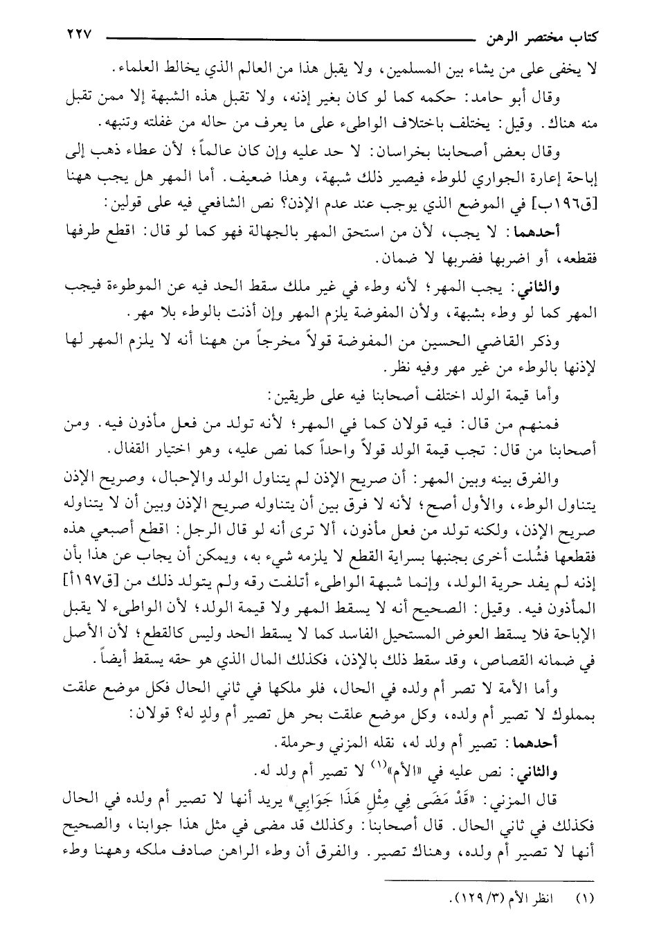 قال المزني: "قَدْ مَضى فِي مِثْلِ هَذَا جَوَابِي" يريد أنها لا تصير أم ولده في الحال فكذلك في ثاني الحال. قال أصحابنا: وكذلك قد مضى في مثل هذا جوابنا، والصحيح أنها لا تصير أم ولده، وهناك تصير. والفرق أن وطء الراهن صادف ملكه وههنا وطء