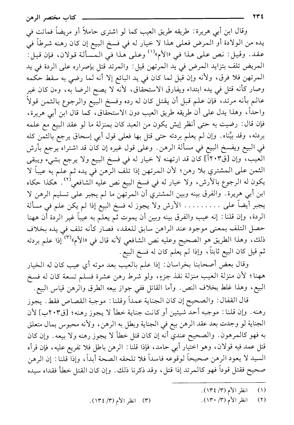 وقال ابن (أبي) هريرة: طريقه طريق العيب كما لو اشترى حاملًا أو مريضاً فماتت في يده من الولادة أو المرض فعلى هذا لا خيار له في فسخ البيع إن كان رهنه شرطًا في عقد. وقيل: نص على هذا في "الأم" وعلى هذا في المسألة قولان, فإن قيل: المريض تلف بتزايد المرض في يد المرتهن قيل: والمرتد قتل بإصراره على الردة في يد المرتهن فلا فرق, ولأنه وإن قيل لما كان في يد البائع إلا أنه لما رضي به سقط حكمه وصار كأنه قتل في يده ابتداء ويفارق الاستحقاق, لأنه لا يصح الرضا به, وءن كان غير عالم بأنه مرتد, فإن علم قبل أن يقتل كان له رده وفسخ البيع والرجوع بالثمن قولًا واحدًا, وهذا يدل على أن طريقه طريق العيب دون الاستحقاق, كما قال ابن أبى هريرة, فإن قال: رضيت به حتى أنظر إيش يكون من العبد كان بمنزلة ما لو عقد البيع مع علمه بردته, وقد بيَّناه. وإن لم يعلم بردته حتى قتل بها فعلى قول أبى إسحاق يرجع بالثمن كله في البيع ويفسخ البيع في مسألة الرهن. وعلى قول غيره إن كان قد اشتراه يرجع بأرش العيب , وإن [ق 203 أ] كان قد ارتهنته لا خيار له في فسخ البيع ولا يرجع نشئ ويبقى الثمن على المشترى بلا رهن, لأن المرتهن إذا تلف الرهن في يده ثم علم به عيباً لا يكون له الرجوع بابلأرش, ولا خيار له في فسخ البيع نص عليه الشافعي. هكذا حكاه ابن أبى هريرة والفرق بينه وبين المشترى أن المرتهن ما لم يجبر على تسليم الرهن لا يجبر أيضًا على ........... الأرش ولا يجوز له فسخ البيع إذا لم يكن علم في مسألة الردة, وإن قلنا: إنه عيب والفرق بينه وبين أن يموت ثم يعلم به عيباً غير الردة أن ههنا حصل التلف بمعنى موجود عند الراهن سابق للعقد, فصار كأنه تلف في يده بخلاف ذلك, وهذا الطريق هو الصحيح وعليه نص الشافعي لأنه قال في "الأم" إذا علم بردته ثم قيل كان البيع ثابتاً, وإذا لم يعلم كان له فسخ البيع.