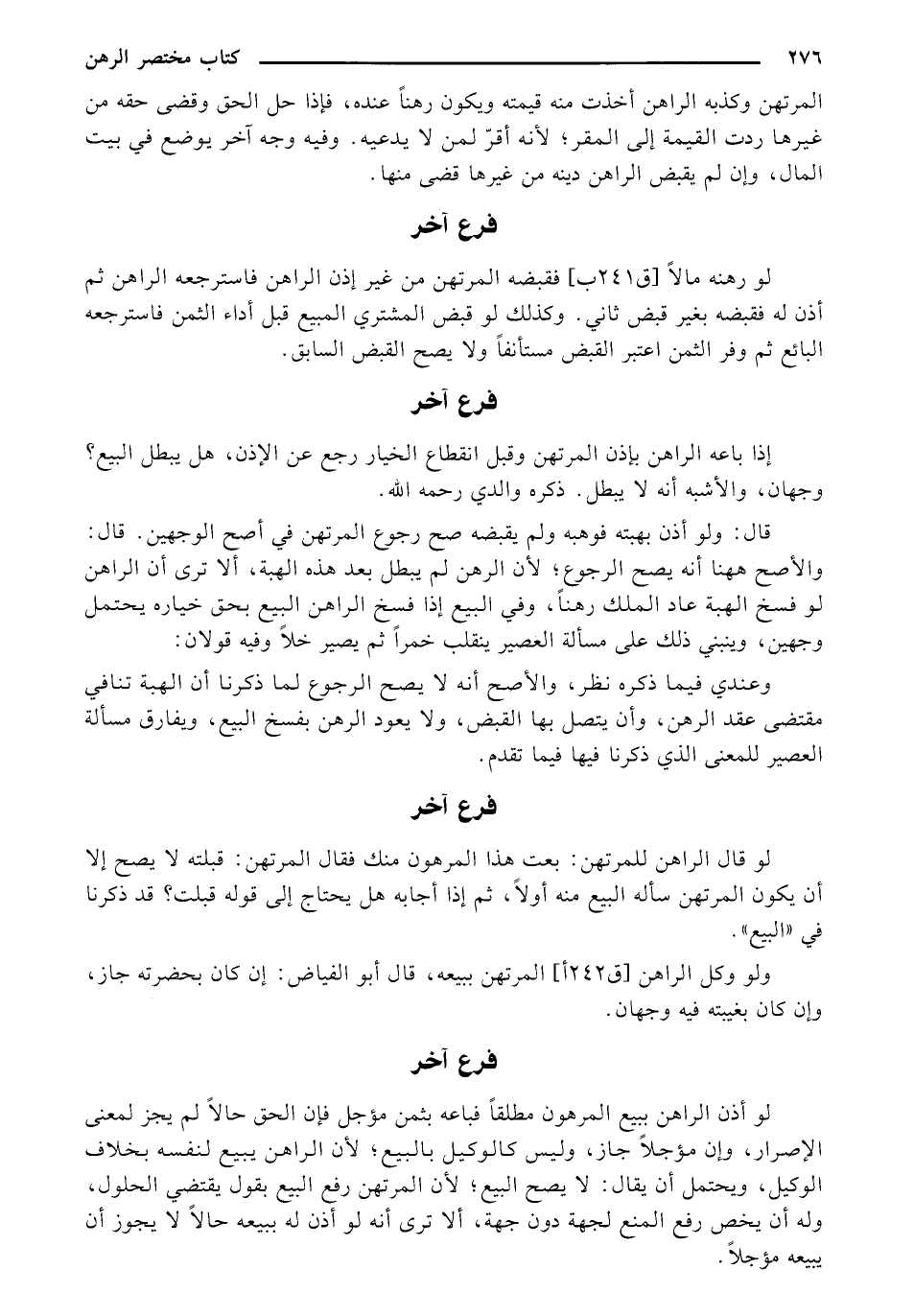 لو رهنه مالاً [ق 241 ب] فقبضه المرتهن من غير إذن الراهن فاسترجعه الراهن ثم أذن له فقبضه بغير قبض ثاني. وكذلك لو قبض المشتري المبيع قبل أداء الثمن فاسترجعه البائع ثم اعتبر القبض مستأنفاً ولا يصح القبض السابق.