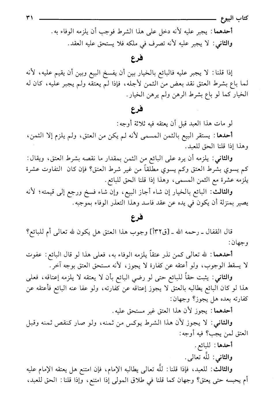 قال القفال -رحمه الله -[ق 32 أ] وجوب هذا العتق هل يكون لله تعالى أم للبائع؟ وجهان:
