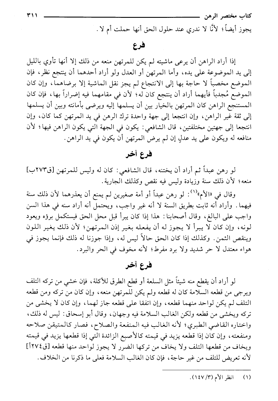 وقال في "الأم": لو رهن عبدًا أو أمة صغيرين لم يمنع أن يعذرهما لأن ذلك سنة فيهما. وأراد أنه ثابت بطريق السنة لا أنه غير واجب, ويحتمل أنه أراد سنه في هذا السن واجب على البالغ, وقال أصحابنا: هذا إذا كان يبرأ قبل محل الحق فيستكمل برؤه ويعود لونه, وإن كان لا يبرأ لا يجوز له أن يفعله بغير إذن المرتهن؛ لأن ذلك يغير اللون وينقص الثمن. وكذلك إذا كان الحق حالاً ليس له, وإذا جوزنا له ذلك فإنما يجوز في هواء معتدل لا حر شديد ولا برد مفرط؛ لأنه مخوف في الحر والبرد.