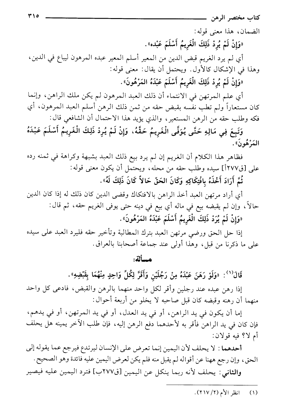 أي علم المرتهن في الانتماء أن ذلك العبد المرهون لم يكن ملك الراهن, وإنما كان مستعارًا ولم تطب نفسه بقبض حقه من ثمن ذلك الرهن أسلم العبد المرهون, أي فكه وطلب حقه من الرهن المستعير, والذي يؤيد الاحتمال أن الشافعي قال: