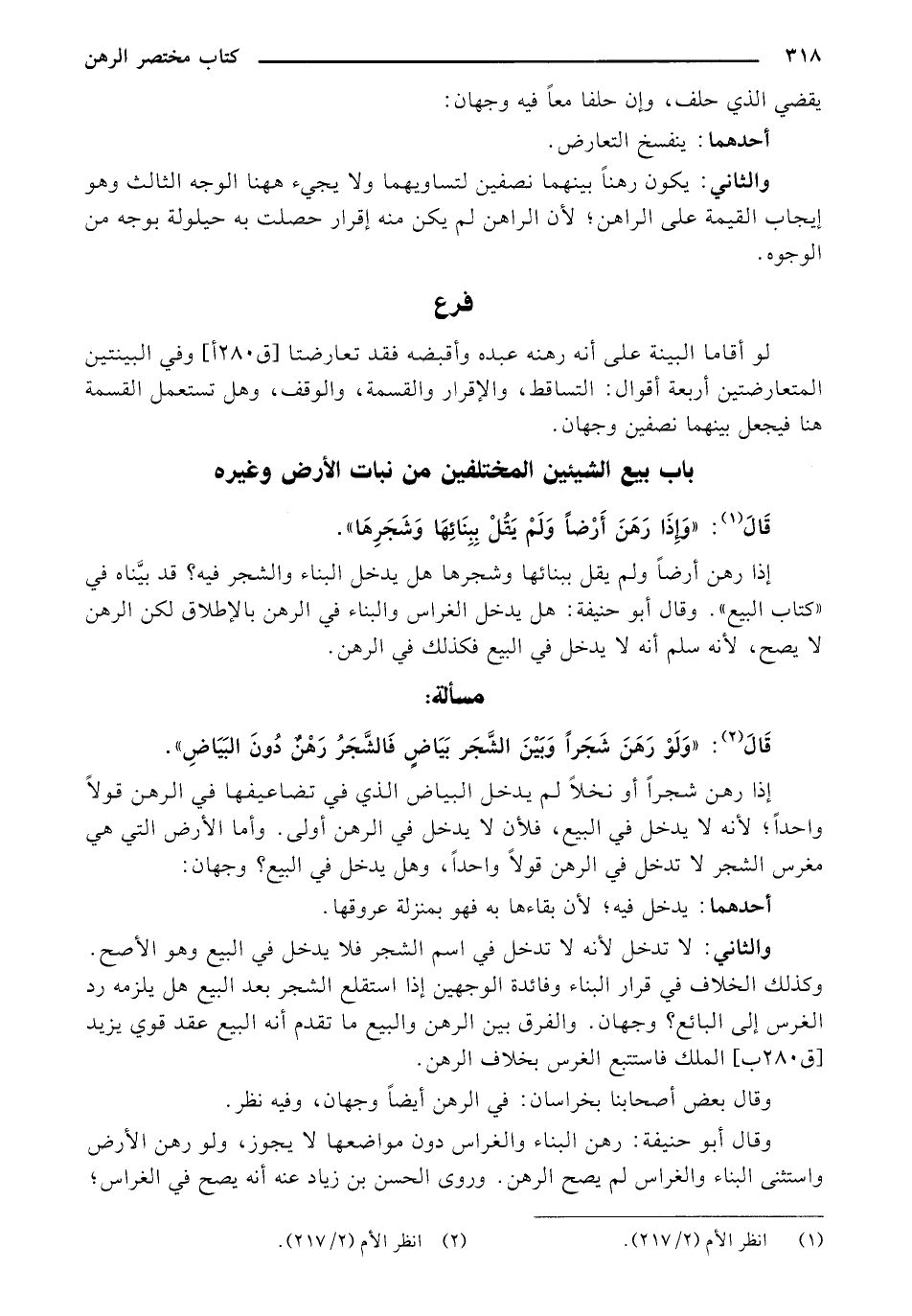 إذا رهن شجرًا أو نخلاً لم يدخل البياض الذي في تضاعيفهما في الرهن قولاً واحدًا؛ لأنه لا يدخل في البيع, فلأن لا يدخل في الرهن أولى. وأما الأرض التي هي نغرس الشجر لا تدخل الرهن قولاً واحدًا, وهل يدخل في البيع؟ وجهان: