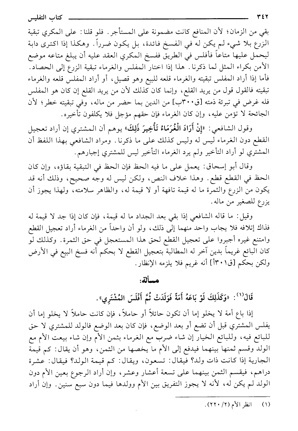 قَالَ: «وَكَذَلِكَ لَوْ بَاعَهُ أَمَةً فَوَلَدَتْ ثُمَّ أَفْلَسَ المُشْتَرِي».