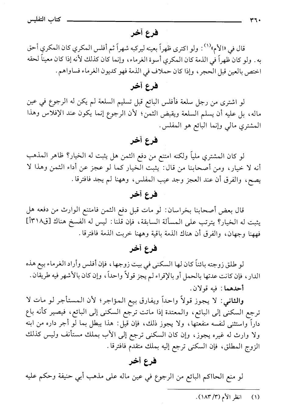 لو اشترى من رجل سلعة فأفلس البائع قبل تسليم السلعة لم يكن له الرجوع في عين ماله, بل عليه أن يسلم السلعة ويقبض الثمن؛ لأن الرجوع إنما يكون عند الإفلاس وهذا المشتري مالي وإنما البائع هو المفلس.