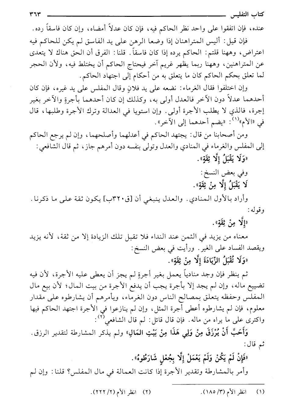 ومن أصحابنا من قال: يجتهد الحاكم في أعدلهما وأصلحهما، وإن لم يرجع الحاكم إلى المفلس والغرماء في المنادي والعدل وتولى بنفسه دون أمرهم جاز، ثم قال الشافعي: "وَلَا يَقْبَلُ إِلًا ثِقَةٍ".