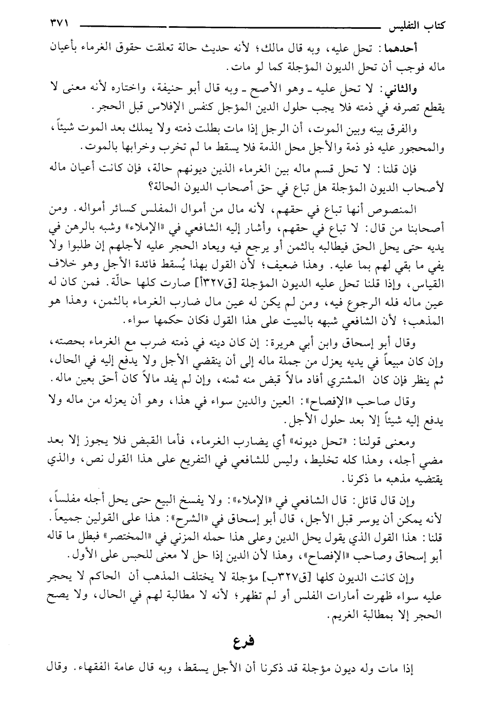 والفرق بينه وبين الموت, أن الرجل إذا مات بطلت ذمته ولا يملك بعد الموت شيئًا, والمحجور عليه ذ ذمة والأجل محل الذمة فلا يسقط ما لم تخرب وخرابها بالموت.