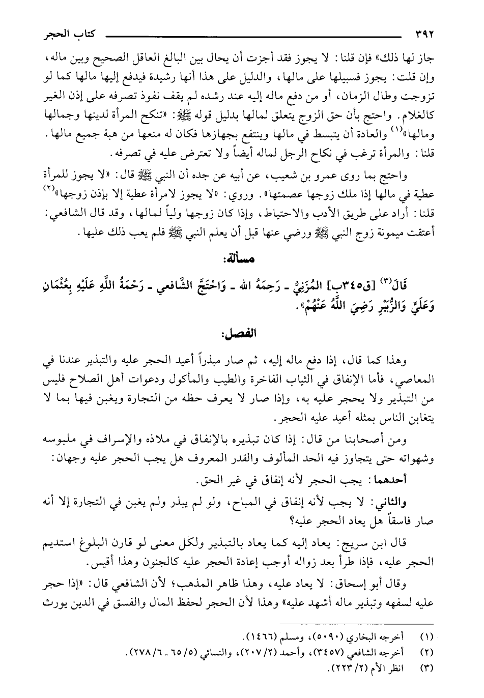 قال [ق 345 ب] المزني - رحمه الله- واحتج الشافعي -رحمه الله عليه بعثمان وعلى والزبير رضي الله عنهم.