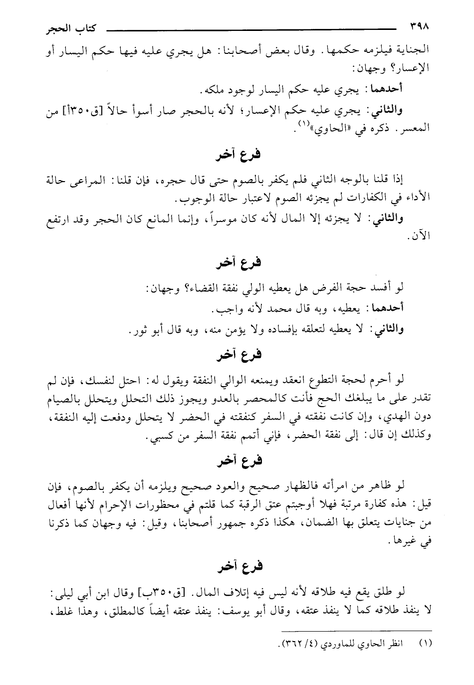 والثاني: يجري عليه حكم الإعسار, لأنه بالحجر صار أسوأ حالًا [ق 350 أ] من المعسر, ذكره في "الحاوي".