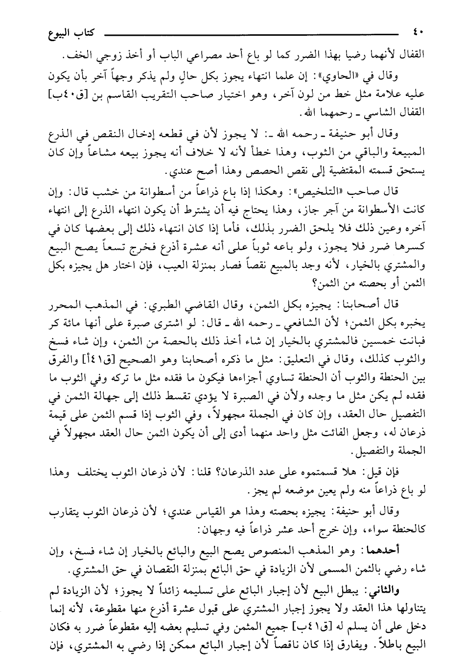 فإن قيل: هلا قسمتموه على عدد الذرعان؟ قلنا: لأن ذرعان الثوب يختلف وهذا لو باع ذراعًا منه ولم يعين موضعه لم يجز.