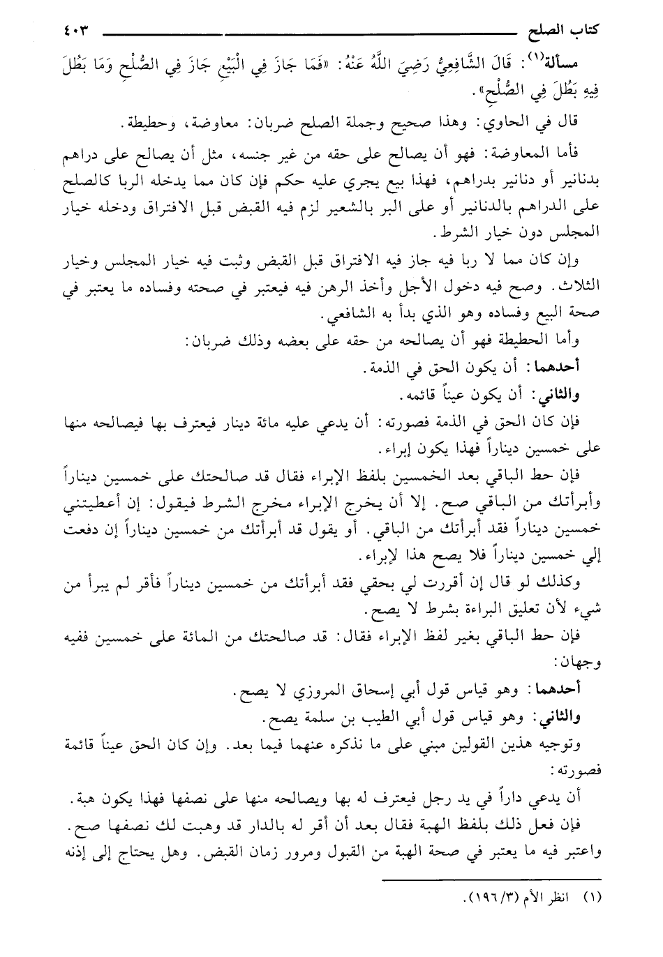 قال في الحاوي: وهذا صحيح وجملة الصلح ضربان: معاوضة، وحطيطة.