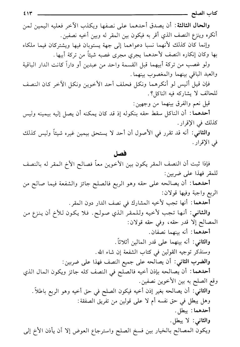 فإذا ثبت أن النصف المقر يكون بين الأخوين معاً فصالح الأخ المقر له بالنصف للمقر فهذا علي ضربين: