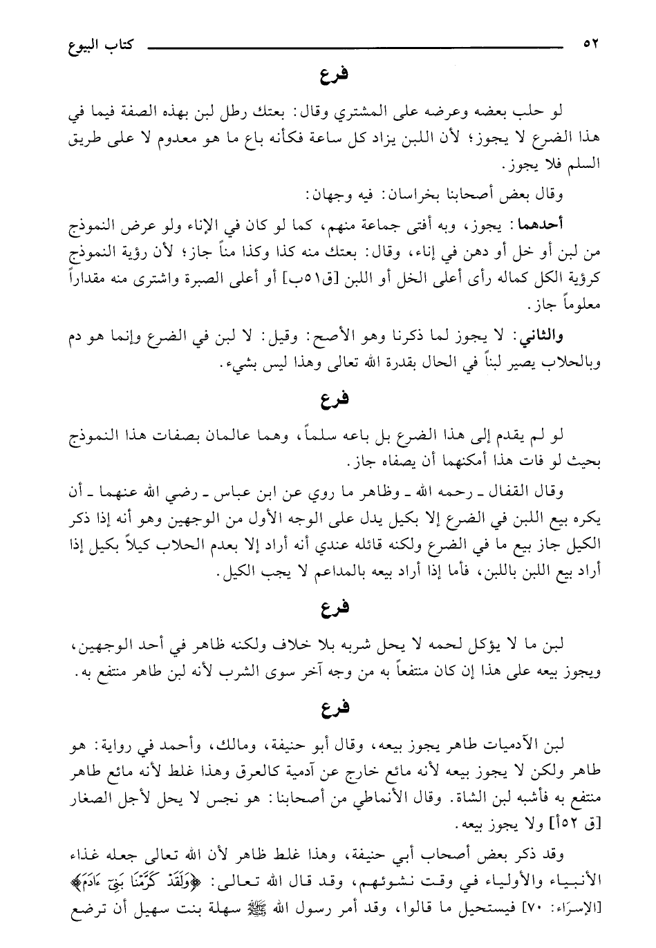وقال القفال -رحمه الله -وظاهر ما روي عن ابن عباس -رضي الله عنهما -أن يكره بيع اللبن في الضرع إلا بكيل يدل على الوجه الأول من الوجهين وهو أنه إذا ذكر الكيل جاز بيع ما في الضرع ولكنه قائلة عندي أنه أراد إلا بعدم الحلاب كيلًا بكيل إذا أراد بيع اللبن باللبن، فأما إذا أراد بيعه بالمداعم لا يجب الكيل.