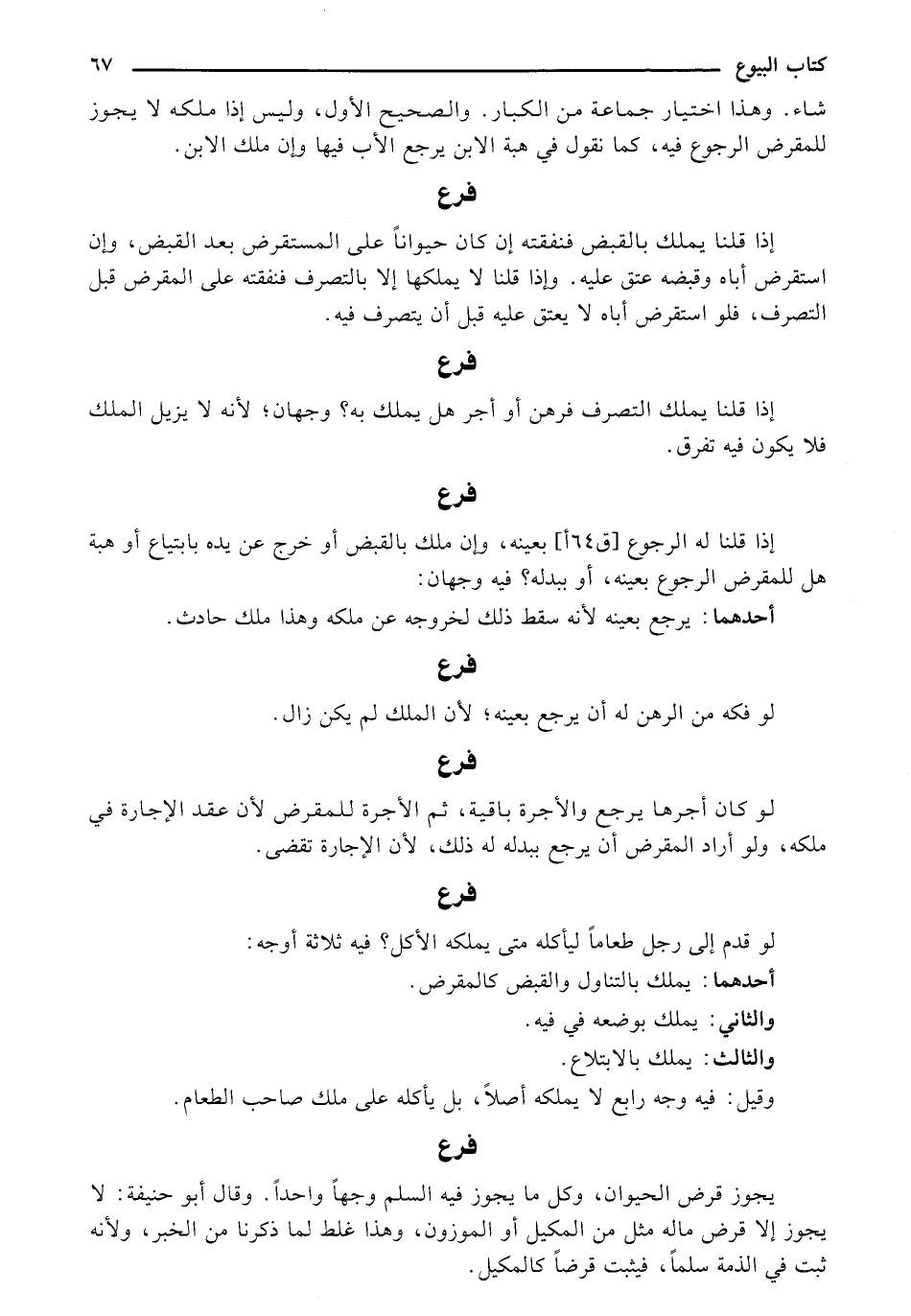 شاء. وهذا اختيار جماعة من الكبار. والصحيح الأول، وليس إذا ملكه لا يجوز للمقرض الرجوع فيه، كما نقول في هبة الابن يرجع الأب فيها وإن ملك الابن.