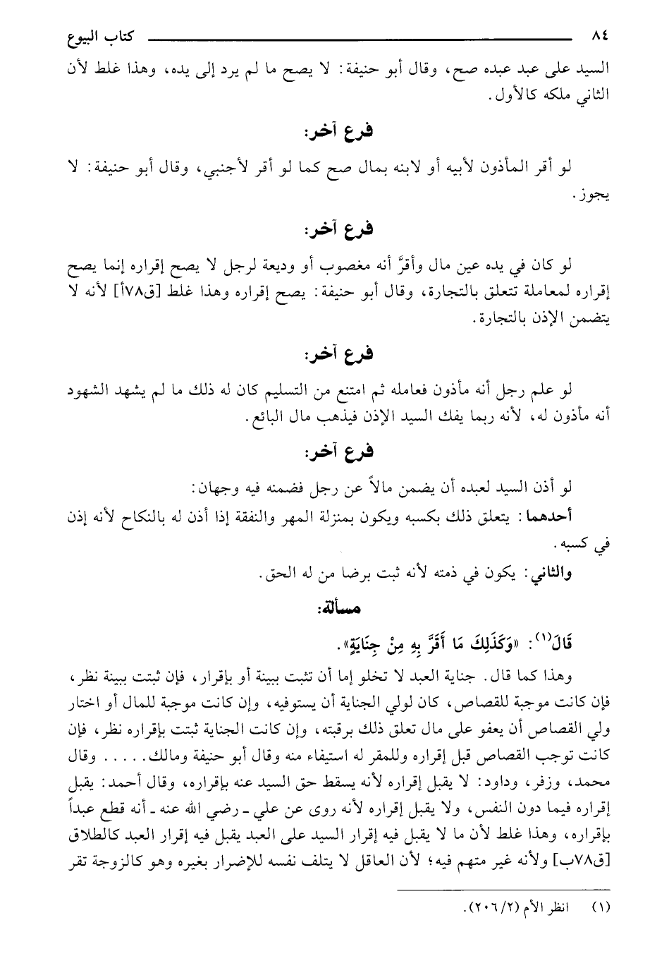 قَالَ: "وَكَذَلِكَ مَا أَقَرَّ بِهِ مِنْ جِنَايَةِ".
