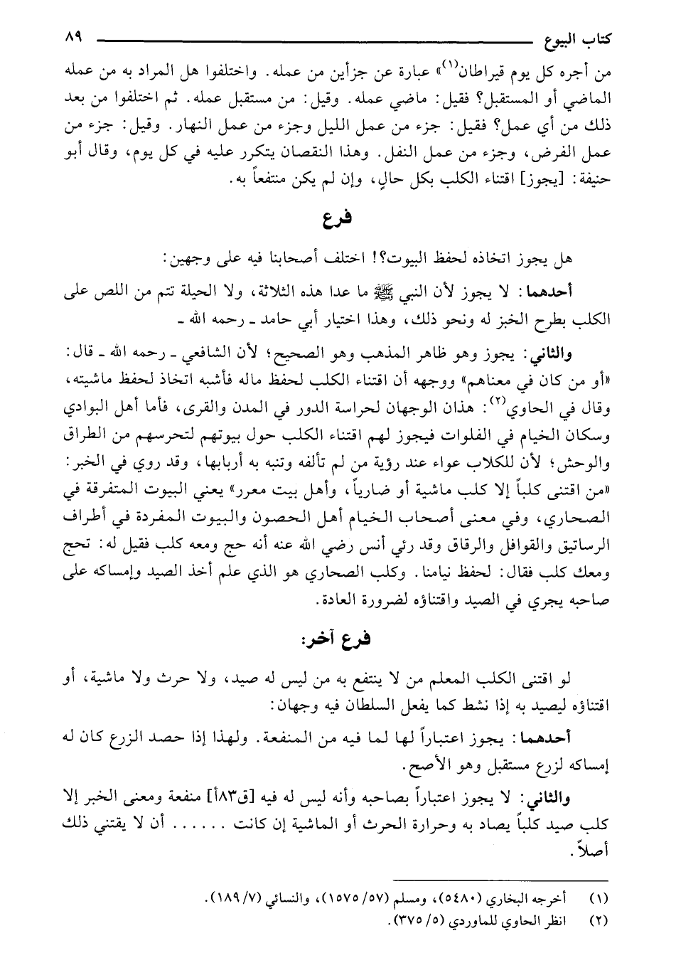 والثاني: لا يجوز اعتبارًا بصاحبه وأنه ليس له فيه [ق 83 أ] منفعة ومعنى الخبر إلا كلب صيد كلبًا يصاد به وحرارة الحرث أو الماشية إن كانت ....... أن لا يقتني ذلك أصلًا.