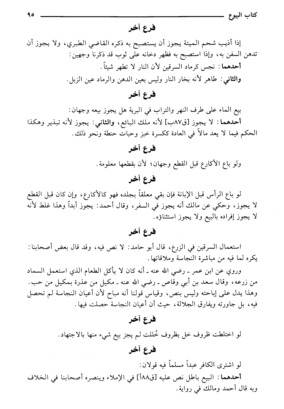 لو باع الرأس قبل الإبانة فإن بقى معلقًا بجلده فهو كالأكارع, وإن كان قبل القطع لا يجوز, وحكي عن مالك أنه يجوز في السفر, وقال أحمد: يجوز أبدًا وهذا غلط لأنه لا يجوز إفراده بالبيع ولا يجوز استثناؤه.