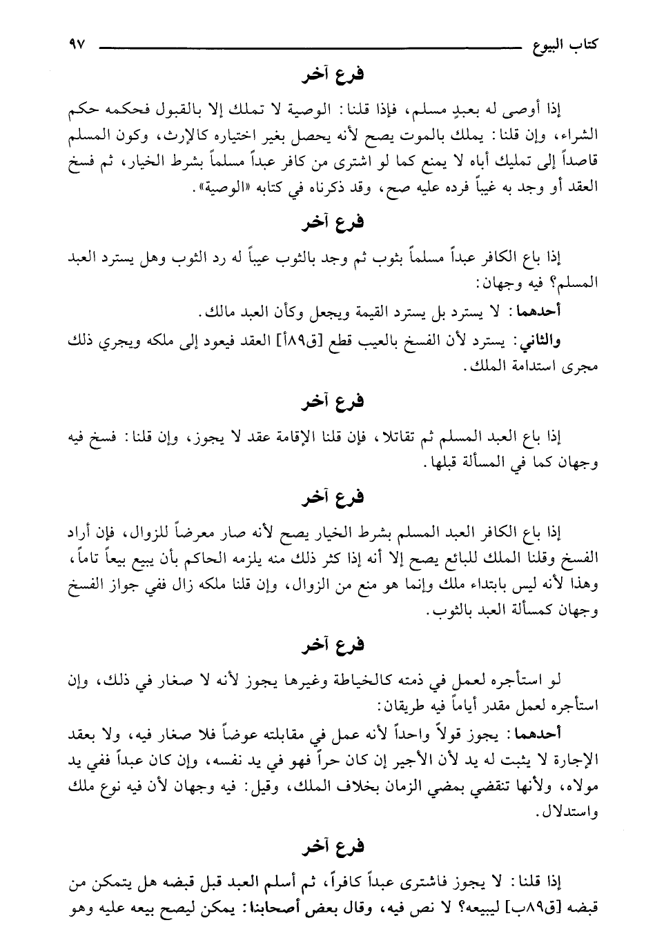 إذا باع الكافر عبدًا مسلمًا بثوب ثم وجد بالثوب عيبًا له رد الثوب وهل يسترد العبد المسلم؟ وفيه وجهان: