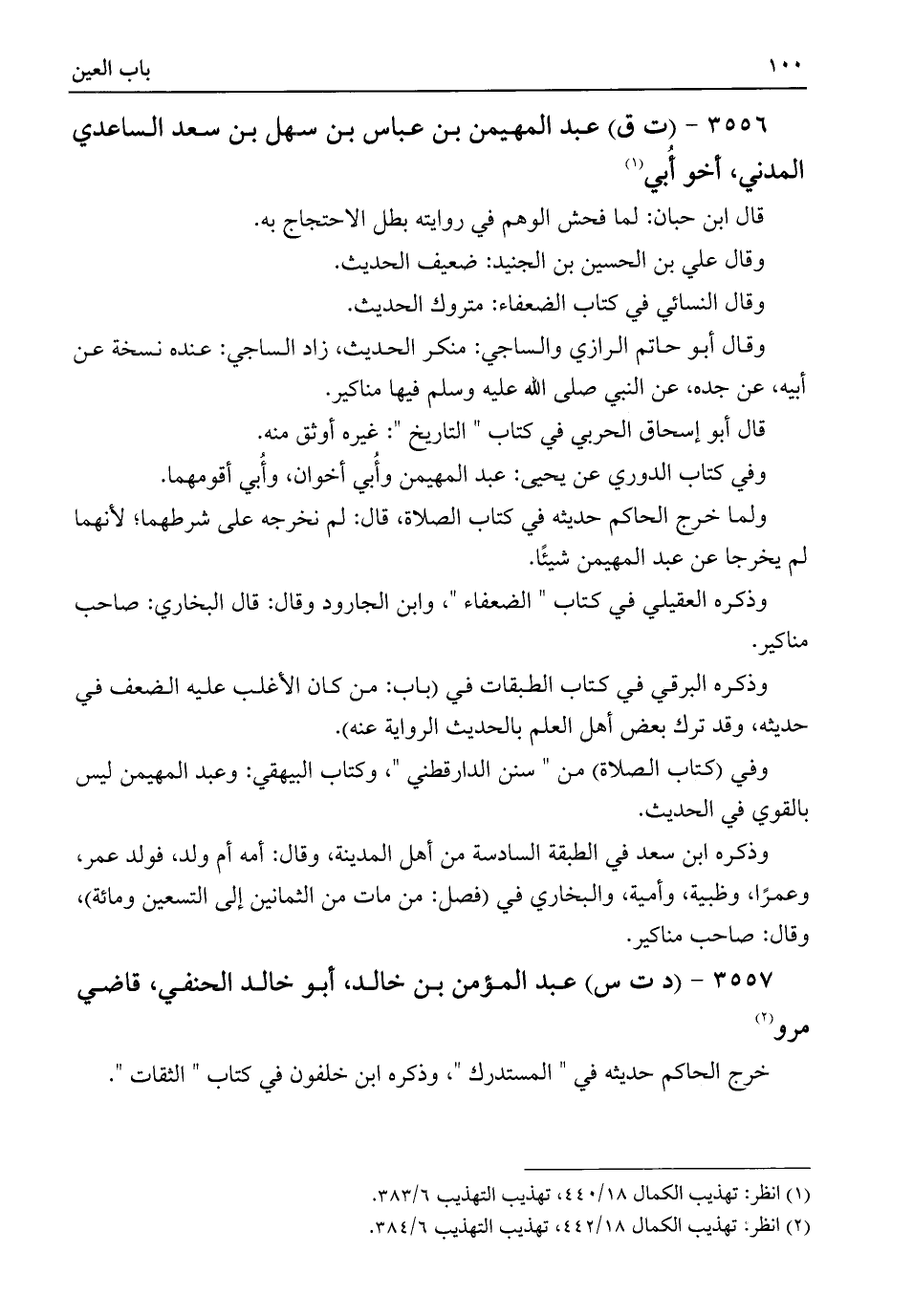 ٣٥٥٦ - (ت ق) عبد المهيمن بن عباس بن سهل بن سعد الساعدي المدني، أخو أُبي (¬١)