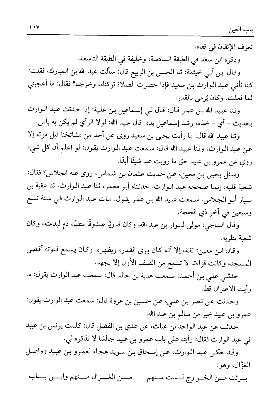 حدثني علي بن أحمد: سمعت هدبة بن خالد قال: سمعت عبد الوارث يقول: ما رأيت الاعتزال قط.