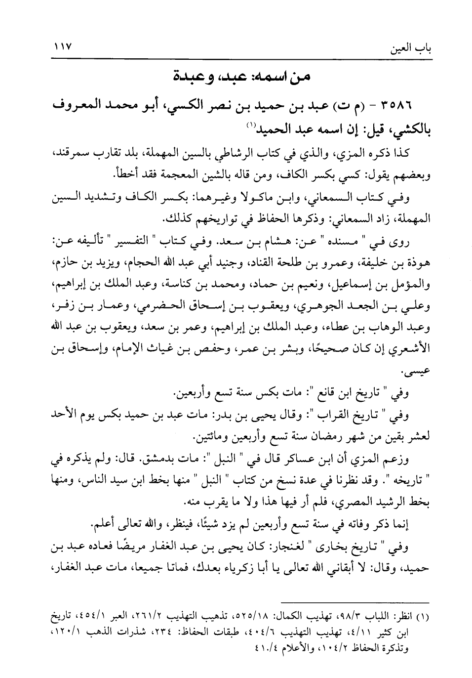 ٣٥٨٦ - (م ت) عبد بن حميد بن نصر الكسي، أبو محمد المعروف بالكشي، قيل: إن اسمه عبد الحميد (¬١)