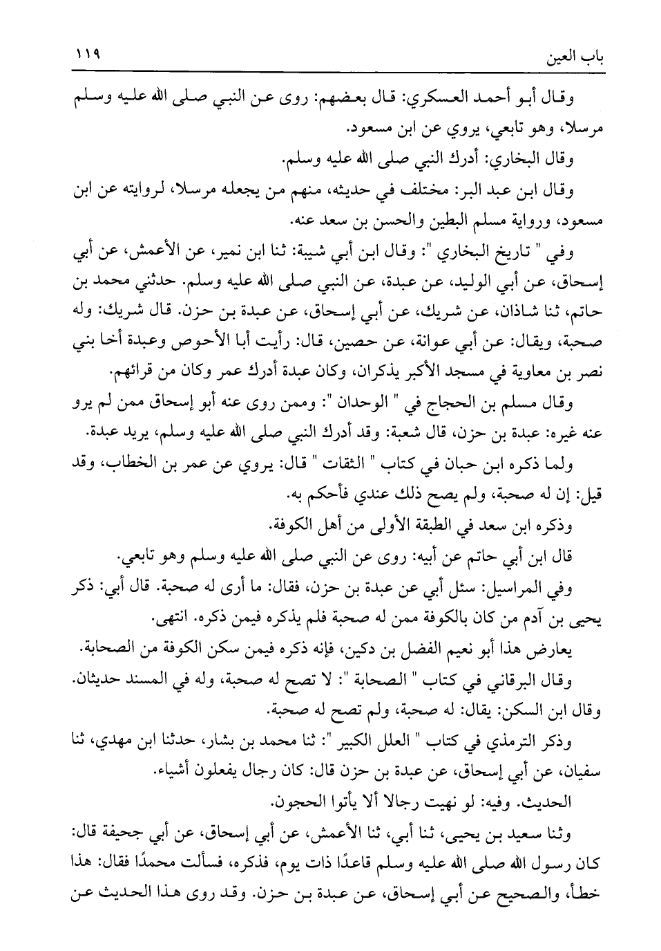 وذكر الترمذي في كتاب "العلل الكبير": ثنا محمد بن بشار، حدثنا ابن مهدي، ثنا سفيان، عن أبي إسحاق، عن عبدة بن حزن قال: كان رجال يفعلون أشياء.