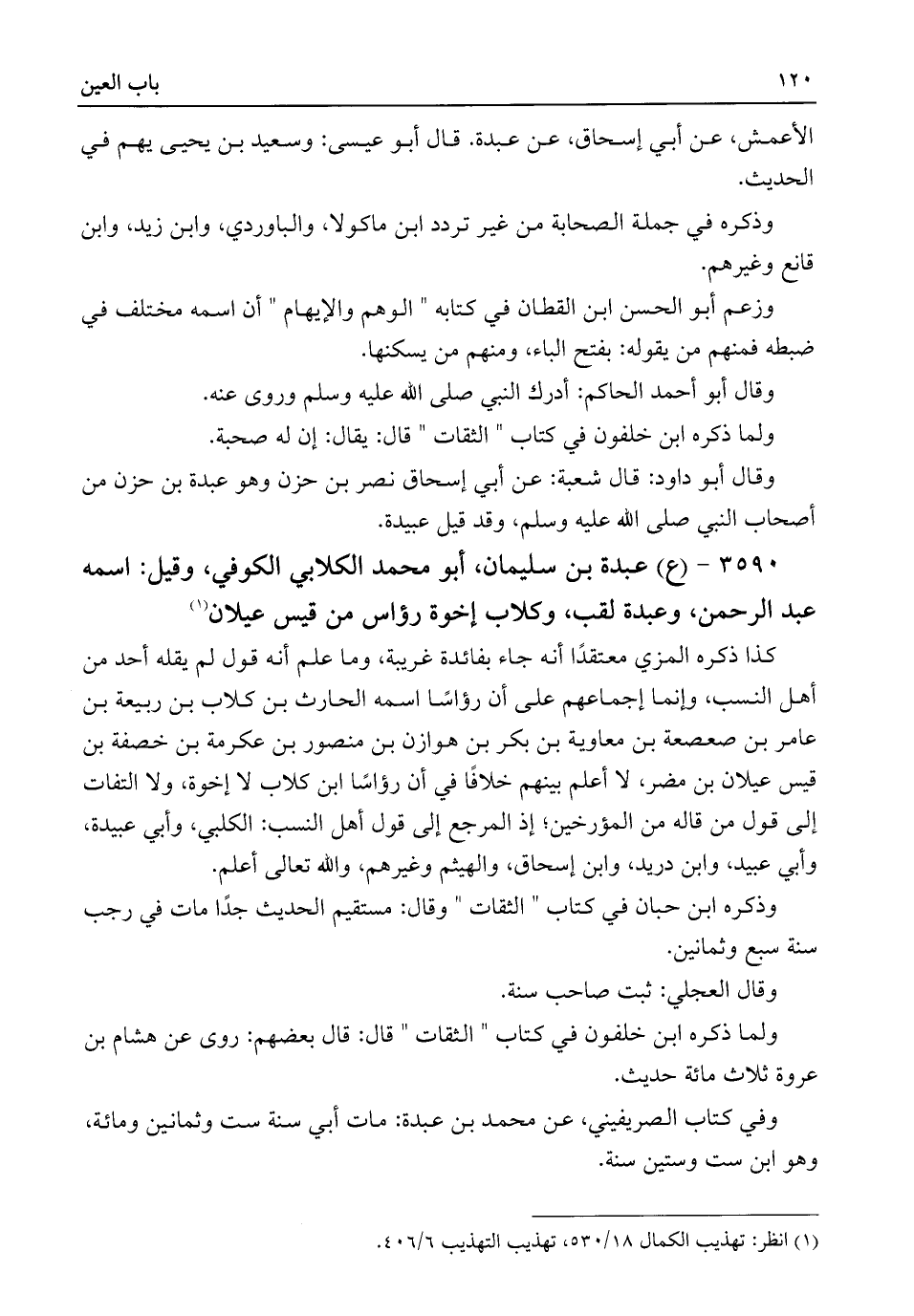 ٣٥٩٠ - (ع) عبدة بن سليمان، أبو محمد الكلابي الكوفي، وقيل: اسمه عبد الرحمن، وعبدة لقب، وكلاب إخوة رؤاس من قيس عيلان (¬١)