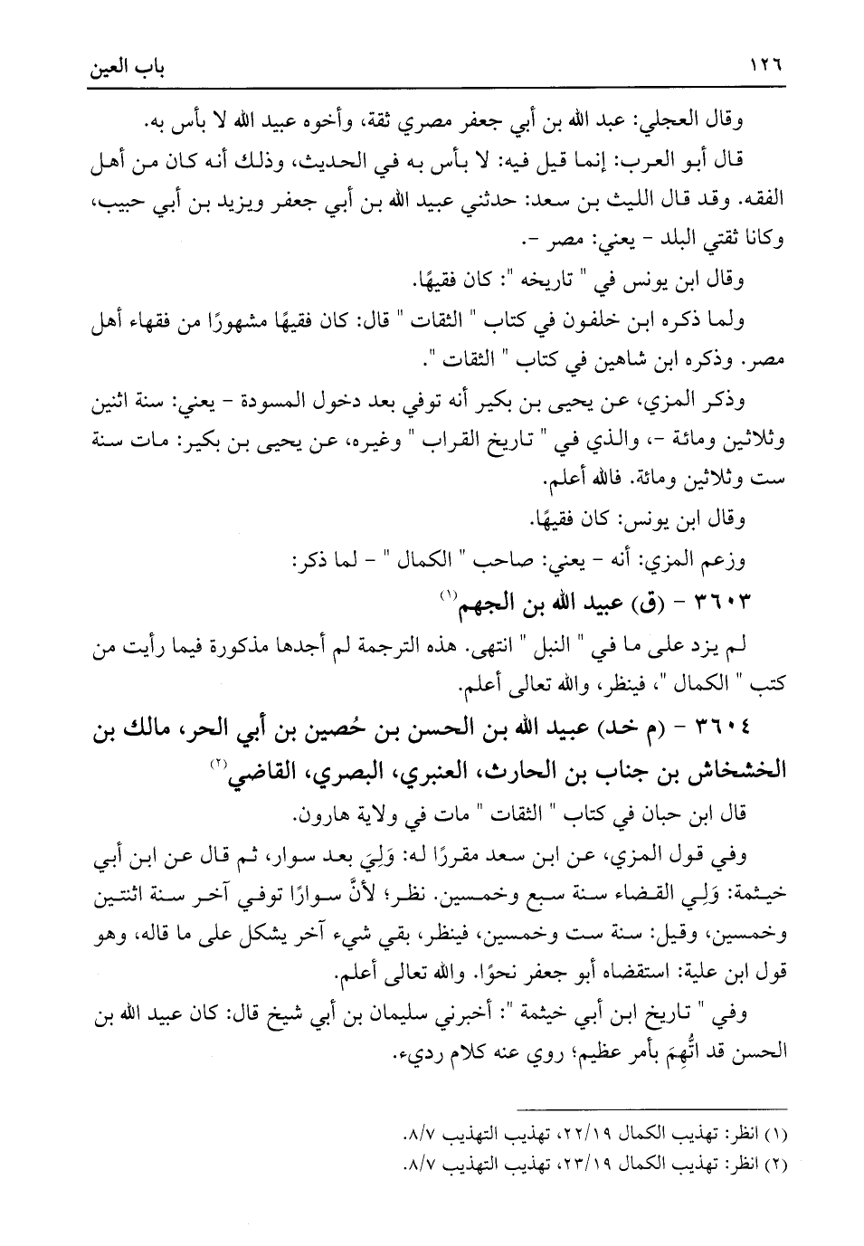 (¬٢) انظر: تهذيب الكمال ١٩/ ٢٣، تهذيب التهذيب ٧/ ٨.