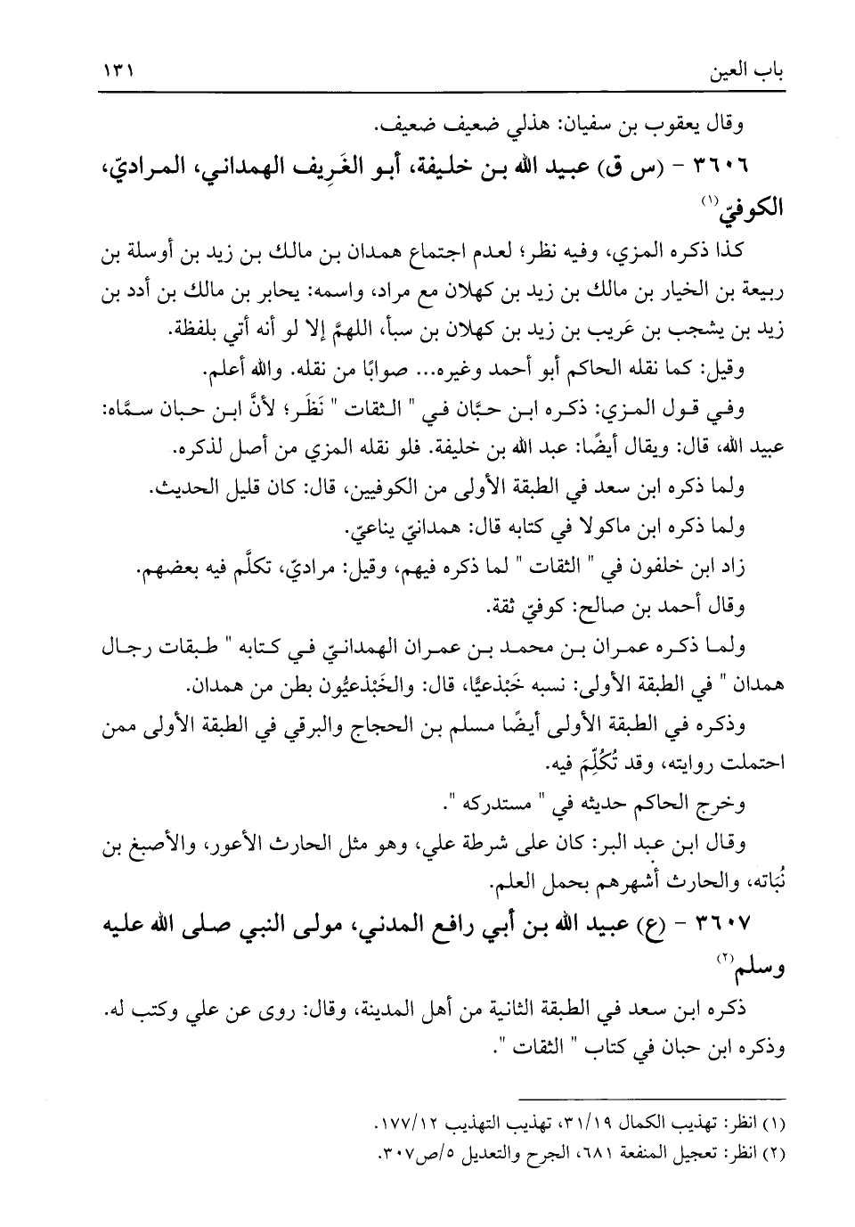(¬٢) انظر: تعجيل المنفعة ٦٨١، الجرح والتعديل ٥/ ص ٣٠٧.