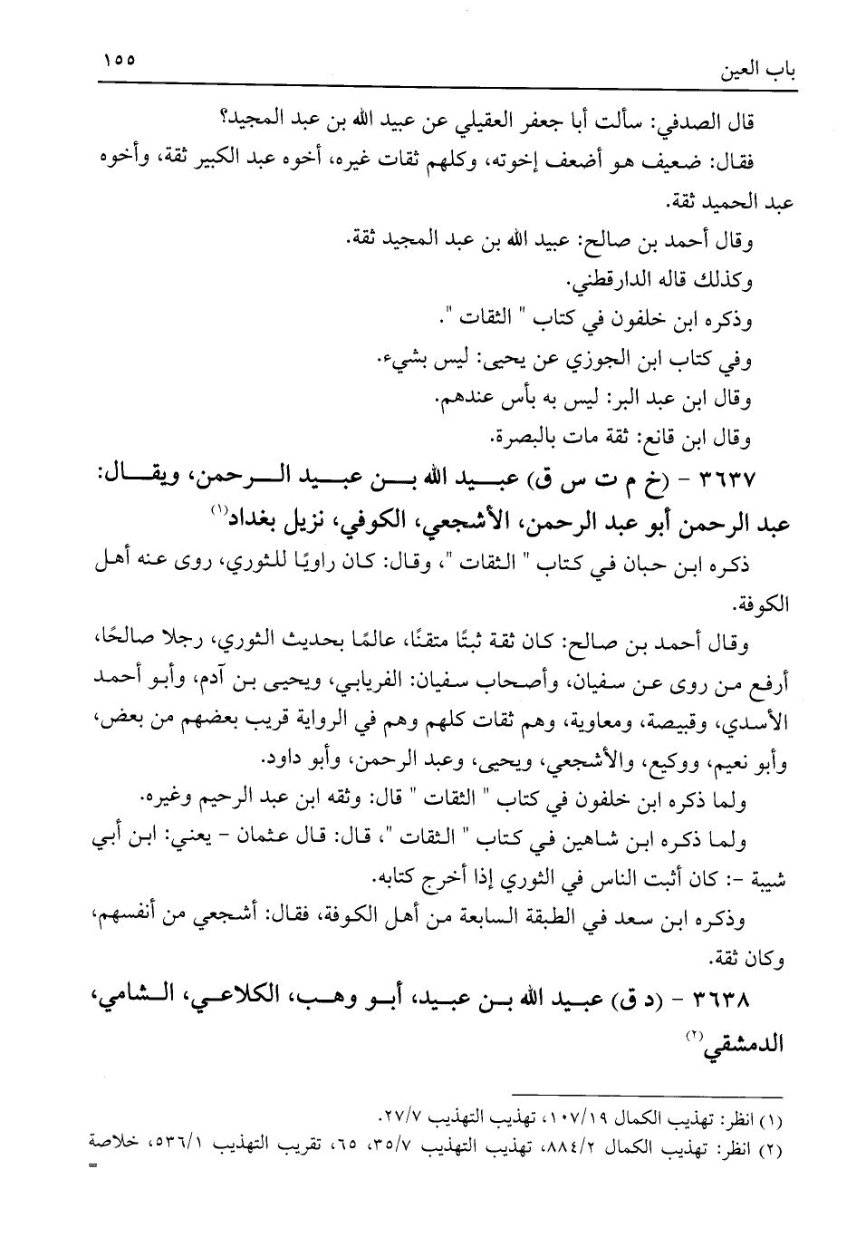 ٣٦٣٧ - (خ م ت س ق) عبيد اللَّه بن عبيد الرحمن، ويقال: عبد الرحمن أبو عبد الرحمن، الأشجعي، الكوفي، نزيل بغداد (¬١)